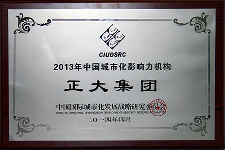 正大集團(tuán)榮膺“2013年中國(guó)城市化影響力機(jī)構(gòu)”榮譽(yù)稱號(hào)