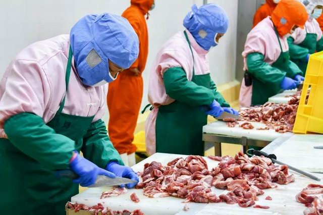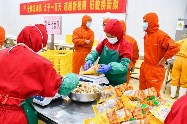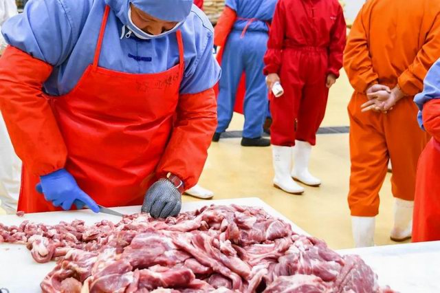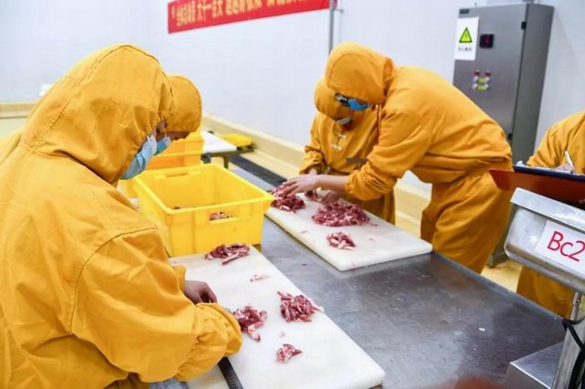 比賽分為兩個(gè)項(xiàng)目:小酥肉原料肉切肉比賽和小酥肉包裝比賽。公司屠宰車間、分割車間、調(diào)理品車間、副產(chǎn)車間和熟食車間共派出6支參賽隊(duì)伍。小酥肉原料肉切肉比賽每個(gè)隊(duì)伍時(shí)間限定20分鐘,在20分鐘內(nèi)根據(jù)所切肉條的重量和完成質(zhì)量評定名次。鍋圈小酥肉包裝比賽每個(gè)隊(duì)伍包裝300袋(約80kg)小酥肉,根據(jù)所用時(shí)間和包裝合格率評定。比賽開始之前,熟食廠經(jīng)理張沛宣布了比賽的規(guī)則,叮囑參賽選手在比賽中注意安全,隨后比賽拉開了帷幕。